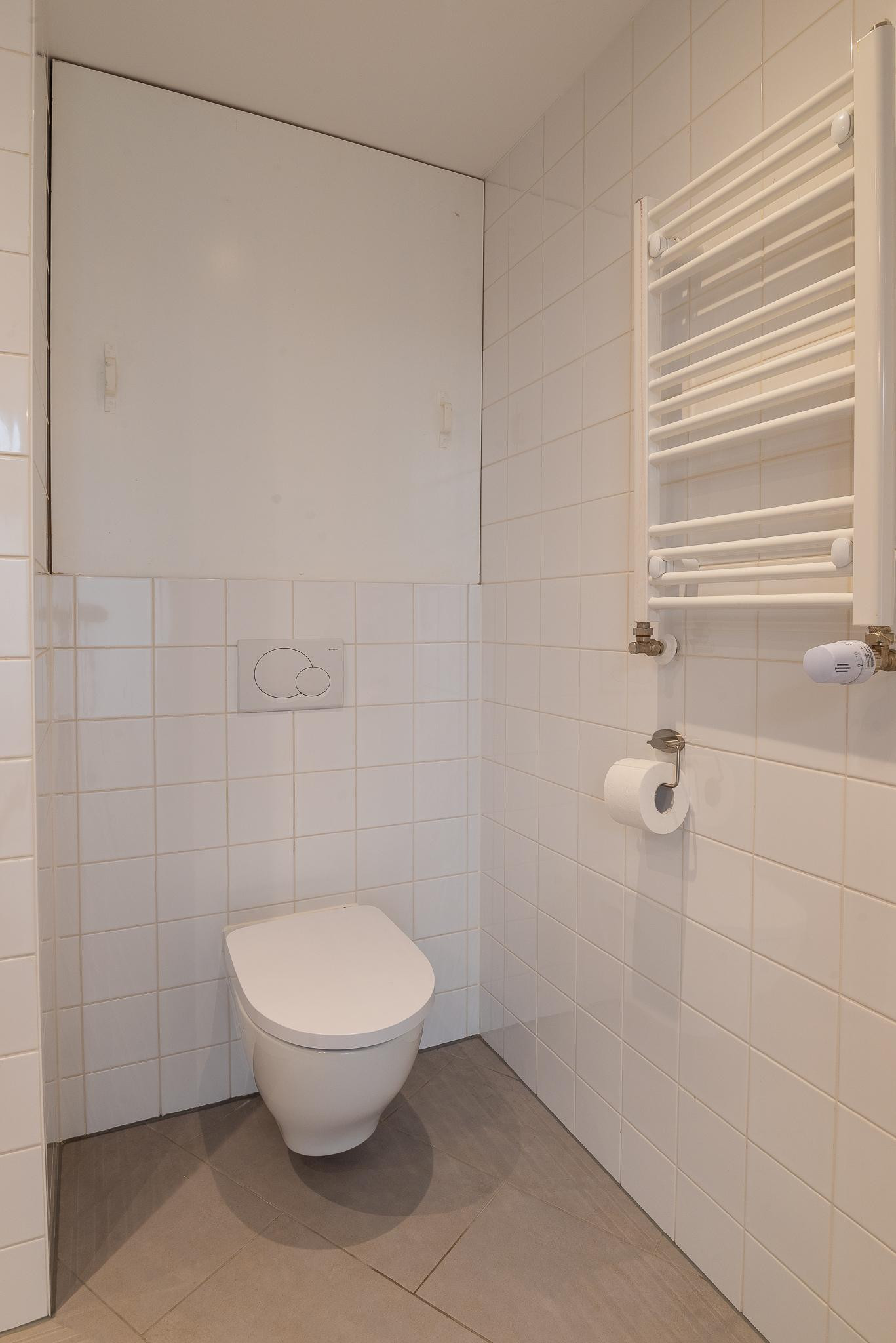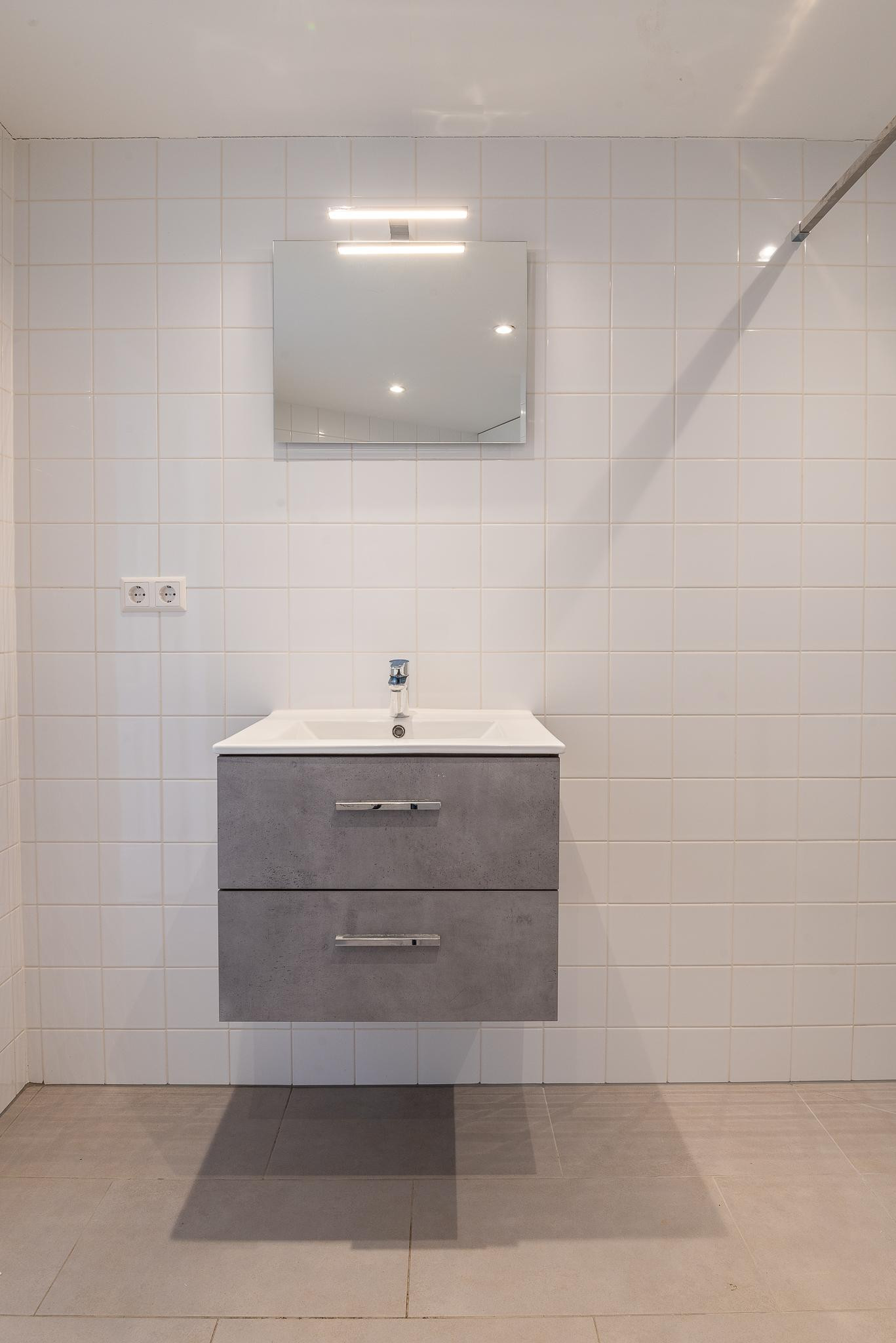 De woning beschikt over één ruime slaapkamer, ideaal als hoofdslaapkamer. De badkamer is uitgerust met een douche, wastafel en toilet.