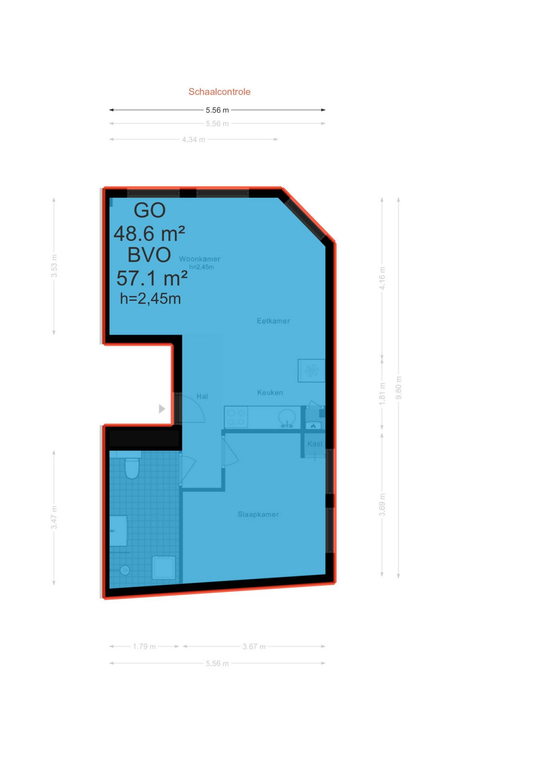 - Hoekwoning van circa 49 m² (NEN2580-meetrapport aanwezig);
