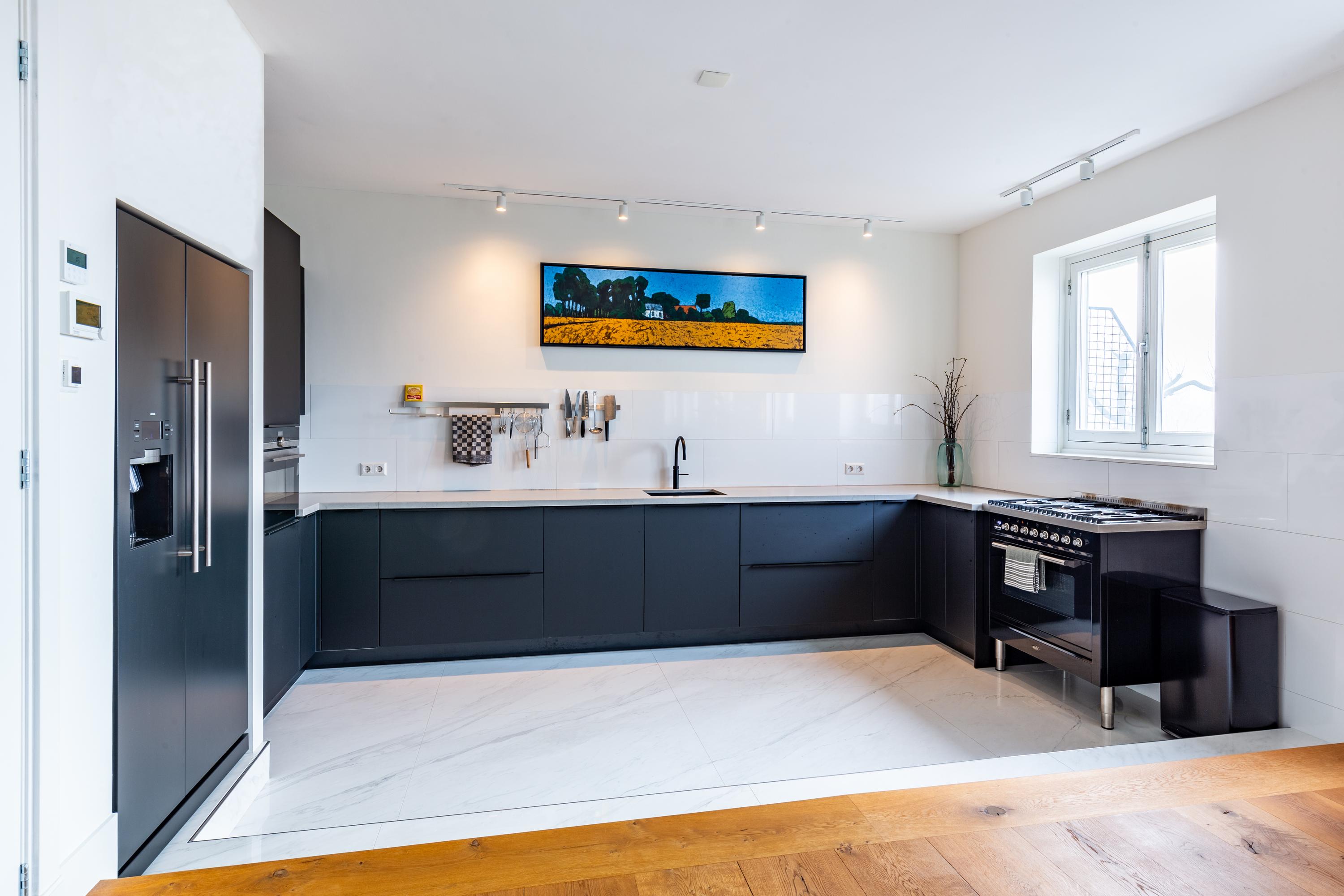 - Ingebouwde Amerikaanse koelkast + vriezer op sta-hoogte